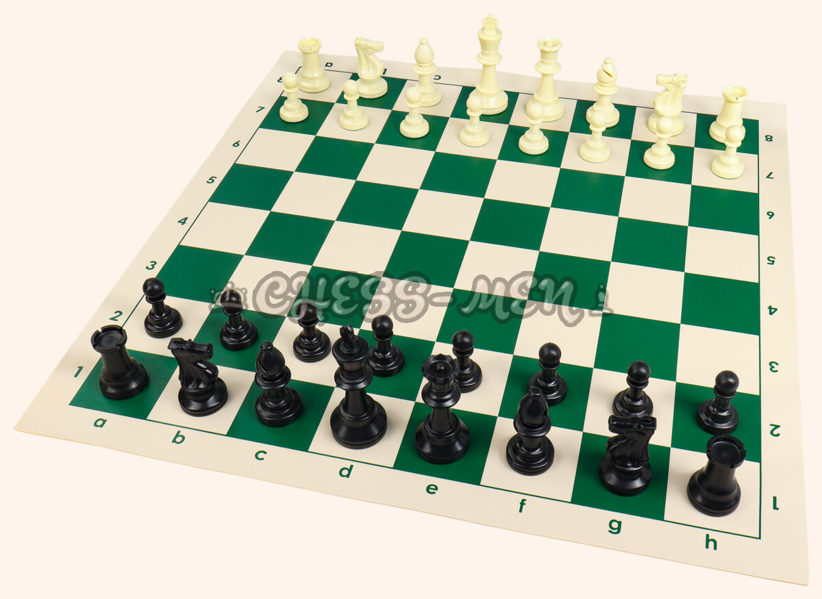 Материал шахматной доски - винил, клетки зелёного цвета