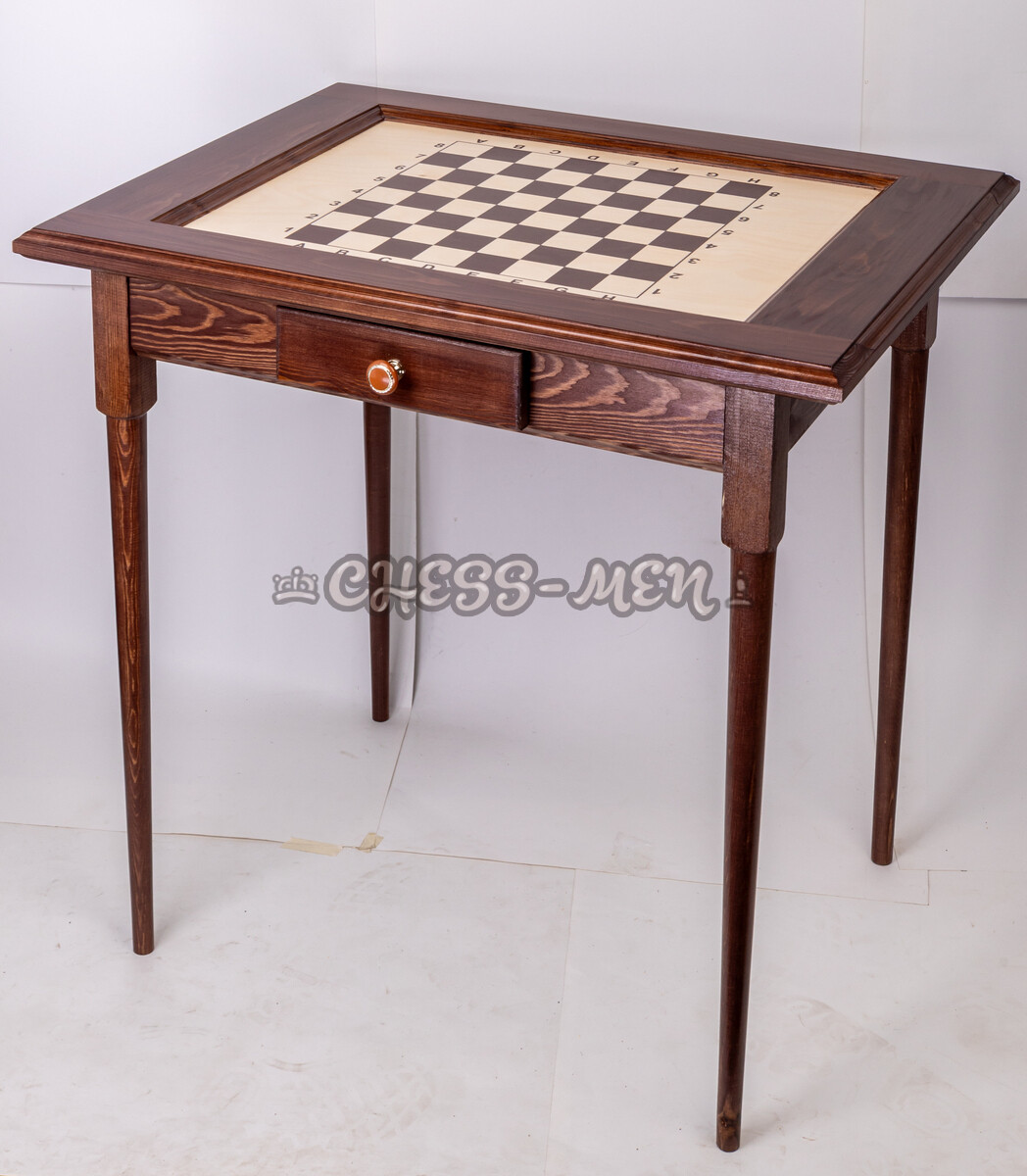 Материал шахматного стола: сосна, тонированная в тёмный цвет